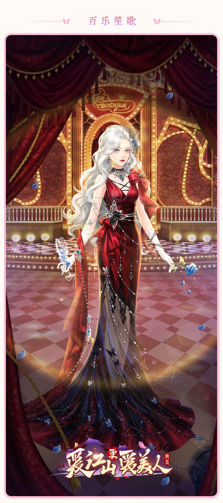 百乐笙歌,内含换装背景:百乐笙歌、场景氛围:绯绒帷幕、场景特效:华灯旧韵;